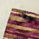 Brosses bordeaux et or et serviette monogram Beach. Ce magnifique design présente des coups de pinceau en bordeaux, or et confettis.