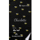 Un élégant arrière - plan noir décoré de jolies petites abeilles souriantes. Personnalisez et ajoutez un nom. Le nom est écrit avec un script de style manuscrit moderne