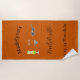 Lancez la fête avec ces serviettes de plage adorables qui sont faciles à personnaliser pour votre enterrement de vie de jeune fille ou votre week-end entre filles ! Le design moderne au style festif présente des images sur le thème de la plage comme un verre à cocktail, un bikini et des lunettes de soleil avec des lettres noires grasses sur fond orange brûlé. Personnalisez avec trois lignes de texte personnalisé ; illustré avec le nom de la mariée, le type d'événement, le lieu et la date. Tout le texte, l'image et l'arrière-plan peuvent être modifiés à votre goût.