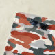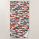Cette serviette de plage a un imprimé de camouflage vibrant avec un riche rouge toscan contrastant avec les tons gris cool dans un motif rappelant le terrain rocheux du désert.