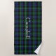 Élégante serviette de plage faite dans le classique clan écossais bleu et vert Campbell tartan plaid motif. Personnalisez le grand texte blanc, au milieu, pour répondre à vos besoins.