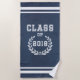 Classe de 2018 design de texte avec couronne de laurier et décoration à rayures blanches pour la graduation. Il est possible de changer la couleur arrière - plan et d'en ajouter une autre dans le design avec votre choix.