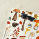 Entrez dans un pays des merveilles boisées avec ce motif qui présente un éventail de champignons sauvages, de feuilles d'automne, de baies et de glands. Peint dans de riches couleurs automnales, chaque élément donne vie à l'essence de la forêt, mettant en valeur la diversité et le charme de la nature.