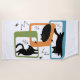 Illustration colorée de style abstrait du milieu du siècle avec chats noirs, étoiles noires et cubes colorés décoration sur arrière - plan blanc