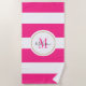 Serviette De Plage Chaud rose blanc rayures Chic Monogramme Personnal