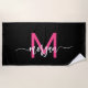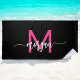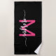 Serviette De Plage Chaud rose noir moderne Script Girl Monogramme Nom
