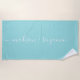 Chic serviette de plage monogrammée avec les noms des nouveaux mariés en calligraphie manuscrite blanche élégante sur un arrière - plan bleu turquoise. Ajoutez simplement vos noms. Un cadeau parfait pour le couple marié ou fiancé. Conçu exclusivement pour vous par Happy Dolphin Studio. Si vous avez besoin d'aide ou de produits correspondants, veuillez nous contacter à l'adresse happydolphinstudio@outlook.com .