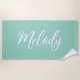 Serviette De Plage Chic Seafoam Green Custom Name Handwritten Script
