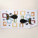 Illustration colorée de style abstrait du milieu du siècle avec chat noir, étoiles noires et cubes colorés décoration sur arrière - plan blanc. Vous pouvez ajouter votre nom/monogramme pour personnaliser l'article.