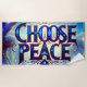 Cette serviette de plage dit "Choisissez la paix" dessus.