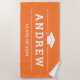 La serviette de plage de graduation personnalisée et élégante présente un design typographique minimaliste avec des accents casquette et rayures. Personnalisez le texte en gras blanc de nom moderne pour votre diplômé et incluez leur année de classe. La couleur orange arrière - plan peut être changée pour correspondre aux couleurs de l'école ou de la fête de remise des diplômes. Fait un cadeau unique de conservation pour les adultes.