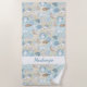 Serviette De Plage Coastal Aqua Blue Sand Seashells Personnalisé