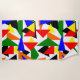 Cette serviette de plage a un design Bauhaus d'un collage de triangles en rouge, jaune, orange, bleu et vert.