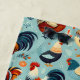 Poulets et coqs Design Motif sans couture. Animaux de ferme; Coq et Hen Graphic Design. Blanc, bleu, rouge et orange.