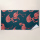 Motif vectoriel avec flamants dessinés à la main en couleur corail vivant sur arrière - plan bleu foncé.
