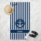 Ahoy là mûrs ! Séchez-vous et devenez douillet à la maison au bord de la piscine, sur la plage ou naviguant en haute mer avec ce design nautique avec une ancre, corde sur rayures bleu marine et blanc. Montré ici avec les mots "Capitaine", vous pouvez le personnaliser avec votre nom ou phrase.