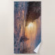 Serviette De Plage Coucher de soleil sur la côte de la mer d'hiver