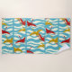 SERVIETTE DE PLAGE CRANES ROUGES JAUNES VOLANTES SUR VAGUES BLANCHES