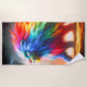 Cette serviette de plage est ornée d'un arc-en-ciel artistique.