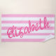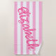 Serviette De Plage Cute Pink Striped Script Name Personalized