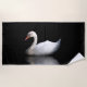 Cygne muet blanc flottant dans un lac avec réflexion dans l'eau contre l'arrière - plan noir