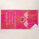 Serviette de plage Flamant rose Dance. Profitez de l'élégante paire d'oiseaux charmants sur un arrière - plan de corail et rose chaud. Nautique, tropicale, côtière ! Idéal pour la piscine, la plage ou le bateau. Gardez la citation "Laissez des empreintes d'amour et de gentillesse où que vous alliez..." ou ajoutez votre propre touche à la personnaliser.