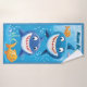 Deux mignons requins souriants se trouvent sur cette serviette de plage. Customisez-le avec un nom et il fait une serviette parfaite pour un garçon qui aime les requins !