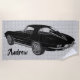 Black Classic Corvette Design Beach Towel avec texte personnalisable et couleur arrière - plan.