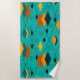 Cette serviette de plage a un design atomique moderne du milieu du siècle des diamants, et des éclats d'étoiles sur un champ de turquoise.