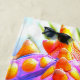 Franchement j'avais un peu peur de la qualité du tissus et des couleurs. Mais à l'arrivée je suis merveilleusement surprise par une belle et grande serviette tout en couleur qui ne dégorge par lors d'un lavage à 30° alors qu'il préconise le lavage à la main. Belles couleurs lumineuses.