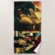Reine égyptienne avec un dragon rouge sur l'épaule. La reine tient un orbe d'Univers. Un lion noir avec des ailes est sur une montagne avec un sphinx derrière.