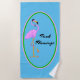 Serviette De Plage Drôle Punk Flamant rose rose sur Turquoise