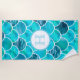Serviette De Plage Échelles de sirène turquoise nom monogramme