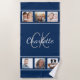Faites votre propre collage photo de famille unique. Utilisez six, 6 de vos photos préférées de vos enfants, de votre famille, de vos amis ou de votre animal de compagnie! Un arrière - plan bleu marine classique. Personnalisez et ajoutez votre nom. Le nom est écrit avec un grand script de style moderne écrit à la main. Lettres blanches et grises.