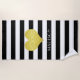 Elégant Gold Heart Name Black And White Stripes Beach Serviette
