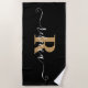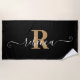 Serviette De Plage Élégant Noir Monogramme Or Nom du script
