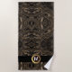 Elégant or noir abstrait tourbillon monogramme Beach Towel. Personnalisez avec le début.