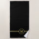 Serviette De Plage Élégant or Monogramme personnalisé sur noir