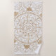 Serviette De Plage Elégant or Oeil Soleil Lune Mandala Blanc