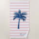 Serviette De Plage Elégante Parties scintillant Bleue Palm Pink Strip