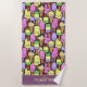 Les enfants adoreront cette serviette de plage colorée. Il est tapissé de mignons popsicles de caractère Kawaii, de lollies et de cônes de crème glacée. Il contient également du texte personnalisable en bas, où vous pouvez ajouter votre propre nom ou message