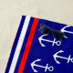 Personnalisez cette serviette de plage marine bleue et blanche d'ancrage avec votre propre libellé. Un cadeau parfait pour les jeunes mariés, la fête de mariage ou la création de serviettes customisées pour des vacances à la plage.