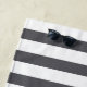 Commencez la fête avec ces serviettes de plage personnalisées, mignonnes et uniques, faciles à personnaliser pour votre bachelorette, votre soirée ou votre week-end de filles ! Le design de style boho de plage dans une palette de couleurs neutres présente de délicates aquarelles illustrant des sandales, des lunettes de champagne, un cocktail mixte et un mignon maillot de bain noir avec des lettres d'accent gris fusain et des rayures grises. Personnalisez avec trois lignes de texte personnalisé ; avec le nom, le type d'événement, l'emplacement et la date de la mariée.