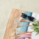 Serviette de plage tropicale pour enterrement de vie de jeune fille, thème aquarelle d'été côtier. Un thème de plage aquarelle frais avec des nuances de rose et de sarcelle, créant l'ambiance d'une escapade à la plage avec la mariée et ses meilleures amies. Des voyages en Floride, en Californie, ou même quelque chose de plus international comme le Mexique, Hawaï ou les Bahamas, ce week-end entre filles va être incroyable ! Chaise de plage rose et blanche mignonne, parasol et une fille se prélassant au soleil. Les palmiers se balancent, les coquillages à collectionner - c'est tout simplement ces vibes de plage tropicale décontractées. Avec des polices modernes ajoutant une touche stylée, c'est le look parfait pour votre week-end d'enterrement de vie de jeune fille. Juste vous et votre groupe, créant