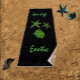 Mosaïque, dessin graphique, de deux, Starfish et Mollusk, coquille, exposée avec la phrase "Sea-Life Exotic" - dans un motif d'île moucheté, dans les tons de, vert, jaune, marron et bleu.