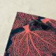 Motif vectoriel en coraux de ventilateur en couleur corail vivant sur arrière - plan bleu foncé.