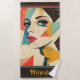 Beau art abstrait presque cubiste d'un beau visage de repos de femme. Ses yeux d'aqua captent votre attention ! Serviette de plage personnalisée avec art dramatique est un grand cadeau pour des vacances au soleil, que ce soit pour vous ou un ami!