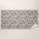 Serviette de plage avec une illustration mignonne de motif de nourriture. Cette conception a les guimauves, les s'mores, les biscuits de Graham et les griffonnages doux de chocolat.