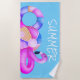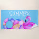 Belle serviette de plage de la piscine d'été. Amusante aquarelle dynamique design. Flamingo rose, ballon de plage et anneau de piscine. Idéal pour la piscine ou la plage.
