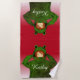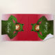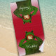 Cute Girl with Green Frog Hoody Dessin Nom personnalisé Serviette de plage. Un dessin mignon d'une fille portant un hoody de grenouille verte sur un arrière - plan rouge. Conception amusante pour une fille. Ajoutez votre nom.